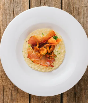 Al Camping Sass Dlacia, il pino mugo è protagonista indiscusso di uno dei piatti più apprezzati: il nostro risotto al pino mugo unisce il sapore delicatamente deciso del burro aromatizzato al pino mugo, con la cremosità rilasciata dai finferli e, per contrasto, con la croccantezza dello speck scottato.